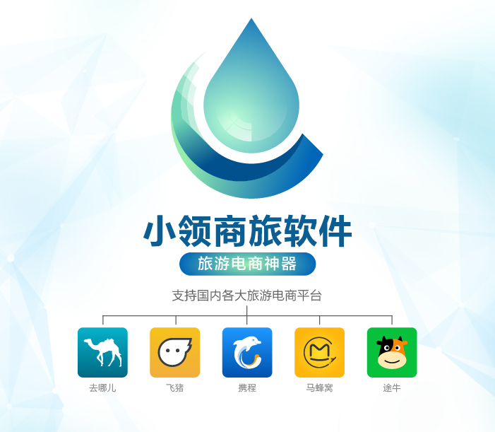 小領(lǐng)商旅軟件,旅游電商神器,國內(nèi)各大旅游電商平臺(tái)(去哪兒,攜程,途牛,飛豬,螞蜂窩...)均可支持:機(jī)票集成,價(jià)格更新,排名分析,價(jià)格對比,做電商就是這么容易!。